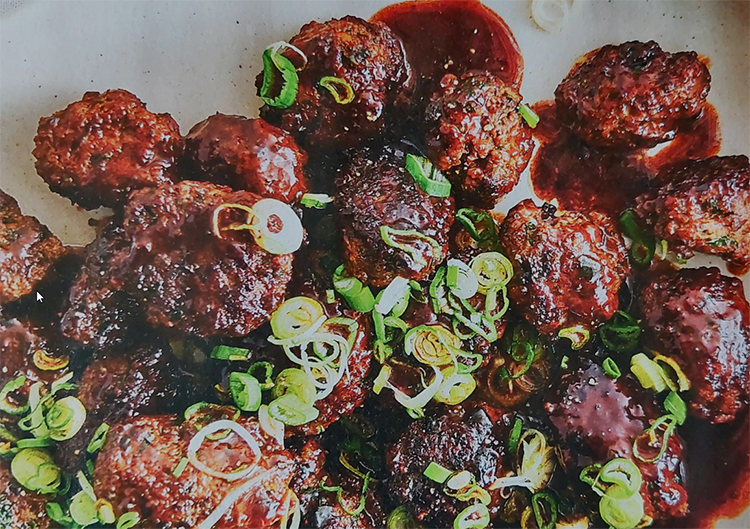 Die Butterschnitzerl auf einer Platte anrichten, mit der Sauce überziehen und mit fein geschnittenen Jungzwiebeln garnieren.