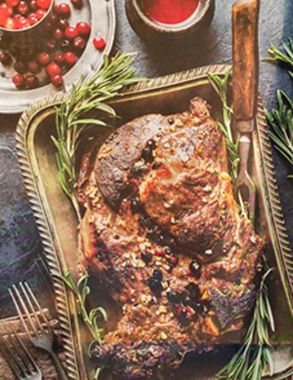 Fleisch aufschneiden. Mit frischen Rosmarinzweigen und Cranberries dekorieren. mit der Cranberry-Sauce anrichten