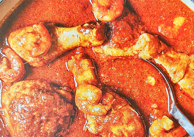 Hühnerteile in die Sauce, Wein, Suppe aufgießen und mit Fischsauce würzen, 45 Minuten sanft köcheln lassen.