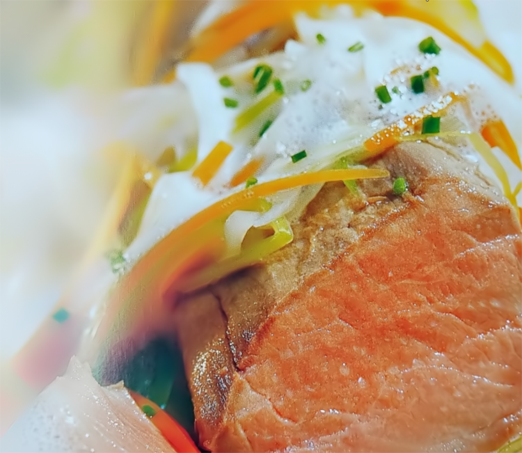 Zum Anrichten das Schweinefilet in 1 cm dicke Scheiben schneiden, mit dem Gemüse und etwas Krensauce in tiefe Teller setzen. Zum Schluss frisch geriebenen Kren und Schnittlauchröllchen auf das Fleisch streuen. (Schuhbeck)