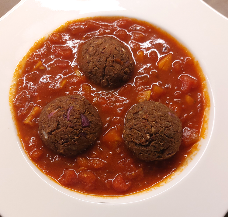 Zwiebel und Knoblauch klein schneiden, in Öl glasig anbraten und die restlichen Zutaten untermischen, bei mittlerer Hitze ca. 10 Minuten einköcheln lassen. Bällchen wenn sie fertig sind in die Sauce legen, mit Reis, Couscous, Bulgur oder Pilaw servieren