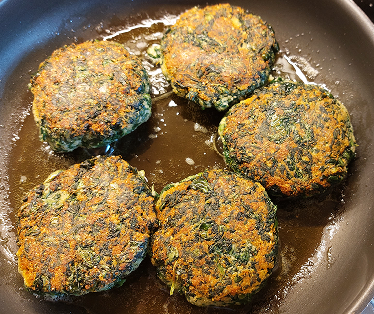 Laibchen formen, und in Olivenöl (nicht zu heiß) langsam beidseitig braten - FERTIG