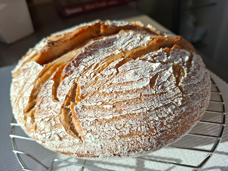 In der Zwischenzeit einen Brotbacktopf mit Deckel ins Backrohr stellen und auf 240 °C aufheizen. Den Laib aus dem Simperl mit dem Schluss nach oben in den Topf geben, zudecken und 20 Minuten im geschlossenen Topf backen. Danach den Deckel entfernen, die Temperatur auf 210 °C reduzieren und das Brot weitere 25-30 Minuten im off enen Topf fertig backen. Auf einem Gitterrost auskühlen lassen.