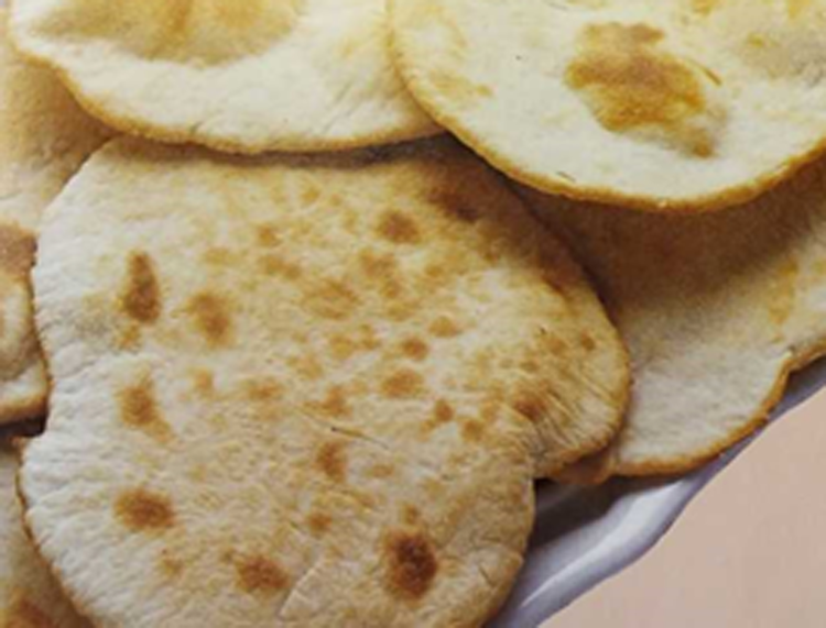 Soviele Kreise wie möglich auf ein Backblech legen und im auf 220 °C vorgeheizten Ofen von beiden Seiten je 4-5 Min. backen, bis braune Flecken erscheinen. Einige Sekunden unter einen heißen Grill legen, bis sie leicht gebräunt sind.