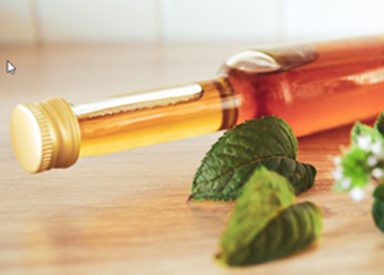 Durch ein feines Metallsieb, ein Geschirrtuch oder einen Nussmilchbeutel abgießen, um den Sud von der Minze zu trennen.