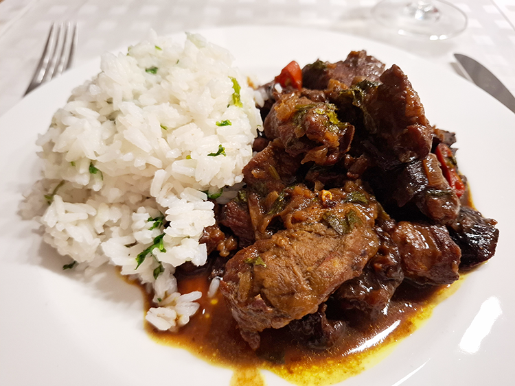 Mit Reis oder Naan servieren - ich mische am Ende der Garzeit noch gehackten Koriander unter den Reis