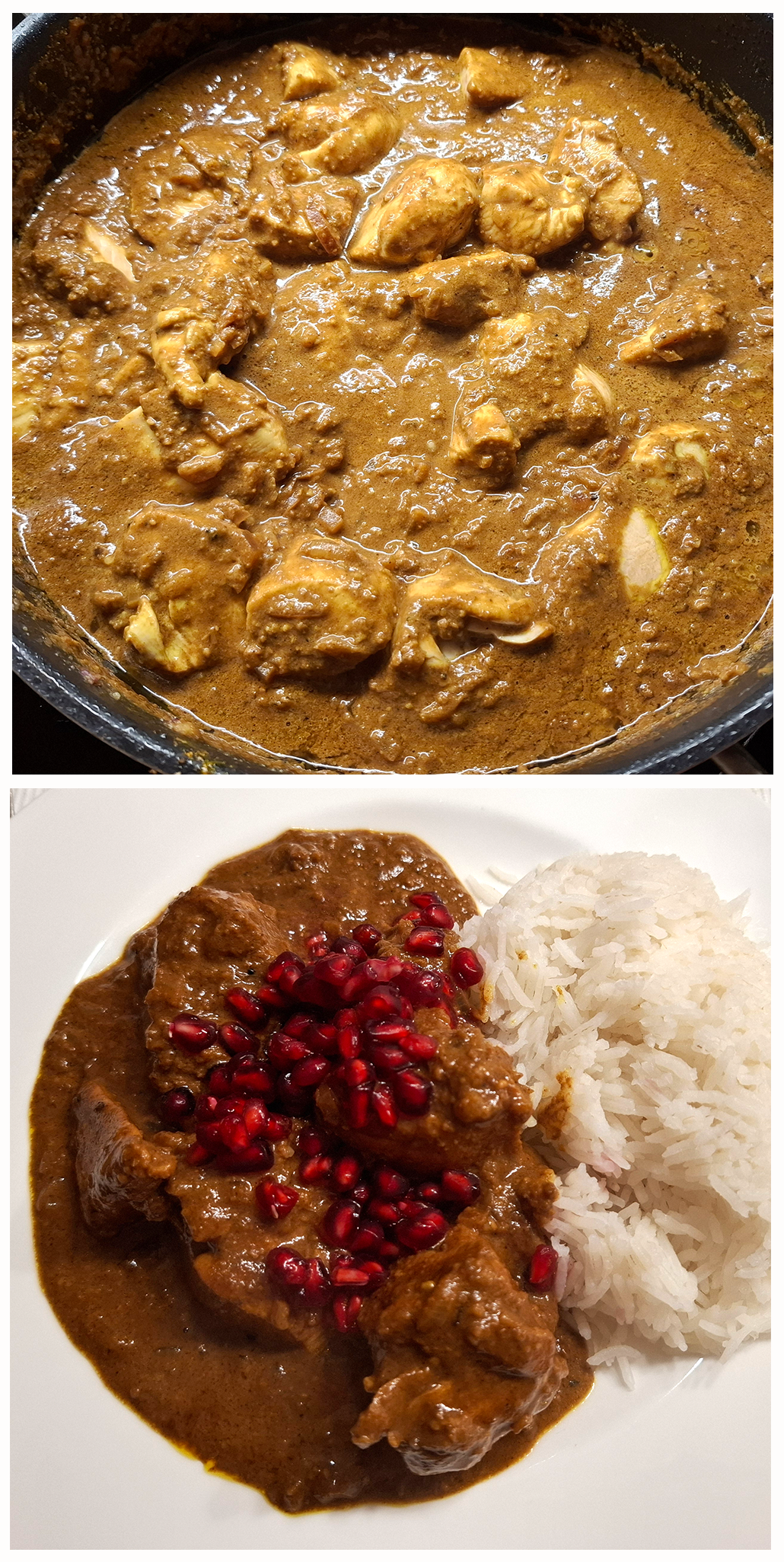 Abschmecken wenn man mag ein wenig Chilipulver dazu (kann ich absolut empfehlen, mit Grantapfelkernen garnieren und mit Reis servieren