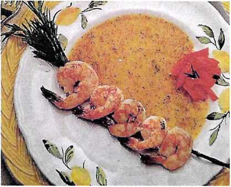 Shrimps trocknen, auf den Rosmarinzweigen aufspießen, in eine Pfanne mit erwärmtem Öl platzieren, auf beiden Seiten ca. 30 Sekunden anbraten, dann in eine Pfanne legen und im auf 400° vorgeheizten Rohr ca. 10 Minuten ziehen lassen.