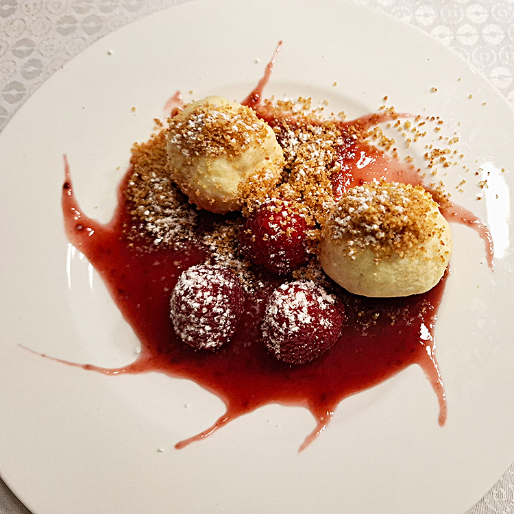 Alles zu einem Teig mit dem Mixer vermischen und im Kühlschrank min. 30 Minuten rasten lassen. Dann kleine Knöderl formen, im siedenden Wasser 10 min ziehen lassen und mit Fruchspiegel,... anrichten. Ich röste die Brösel mit Butter gebe aber keinen Zucker dazu sonst wird mit dem Fruchtspiegel das Ganze viel zu süß
