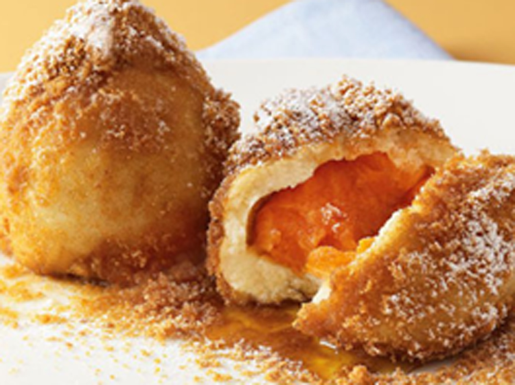 Teigstücke abstechen, flach drücken und füllen.