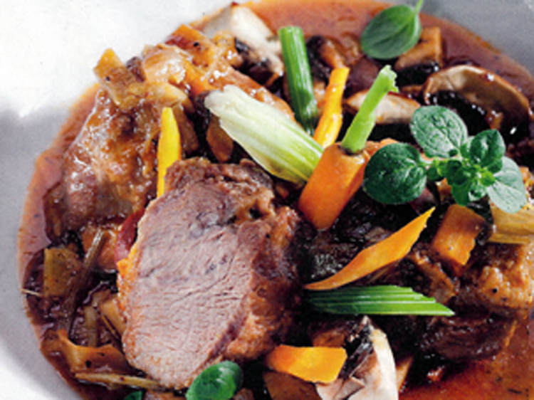 Speck in etwas Öl anbraten, bis er Farbe annimmt, Pilze, Gemüse, Kräuter dazugeben und mitrösten. Mit Bier ablöschen, mit Gemüsefonds aufgießen und kurz köcheln lassen. Wangerl dazugeben und im Saft ca. 1 Stunden köcheln lassen.