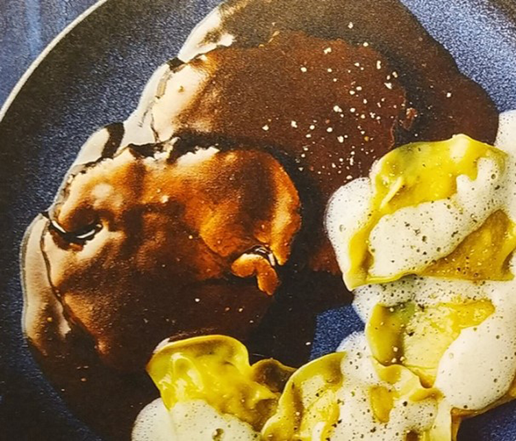 Sauce aufkochen, in Scheiben geschnittenes Fleisch darin erhitzen, dazu Sellerietascherl oder Nudeln,….